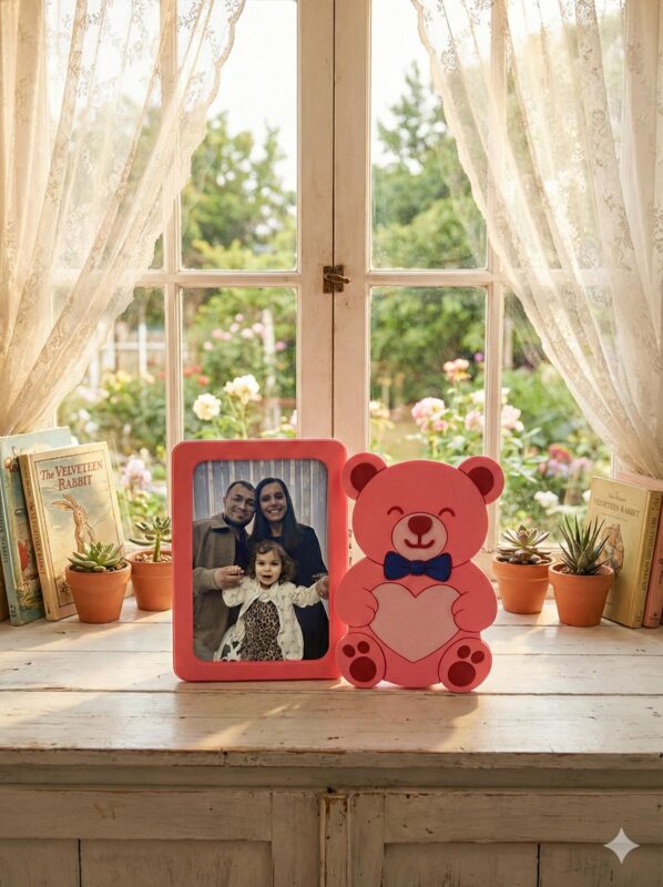 Sevimli Pembe Ayıcık Figürlü Çocuk Odası Fotoğraf Çerçevesi