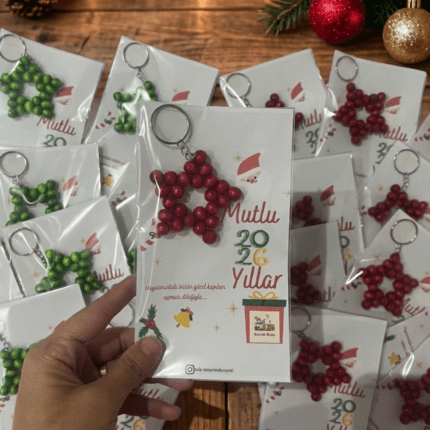 Ahşap Boncuklu Yıldız Anahtarlık ve Özel Tasarım Kart